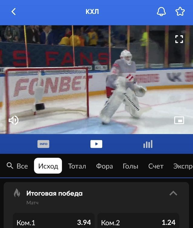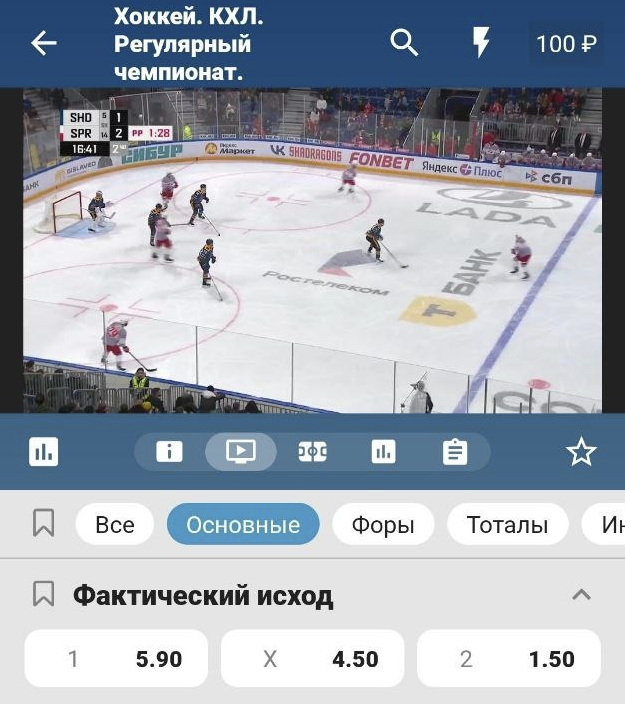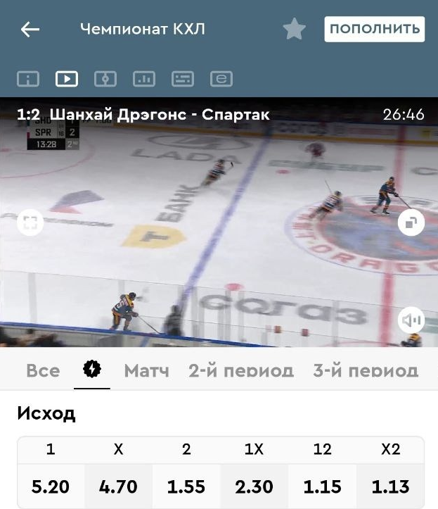 Как выглядят трансляции КХЛ на сайтах БК