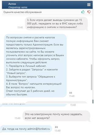 В целом ответы в чате Фонбет получил быстро, и все они ожидаемые. В этом случае не пришлось задавать много уточняющих вопросов.