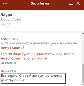 Получил чёткий ответ о блокировке нового аккаунта. Но что тогда будет со старым личным кабинетом? Такой вопрос и был задан, и получен такой ответ: