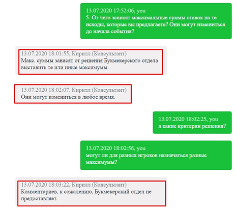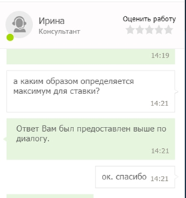 4. Вопрос по поводу максимальных ставок также не прояснил ничего, как и в случае с предыдущими операторами. Снова всё на усмотрение администрации. На уточняющие вопросы получил примерно такие же комментарии.