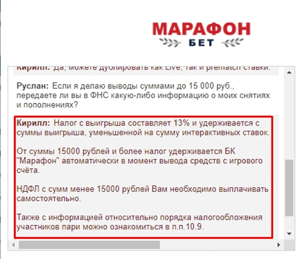Пришлось уточнить все-таки, предоставляет ли букмекер Марафон информацию в ФНС о выигрышах до 15 тыс. В ответ получили, что нужно обращаться в налоговый орган: