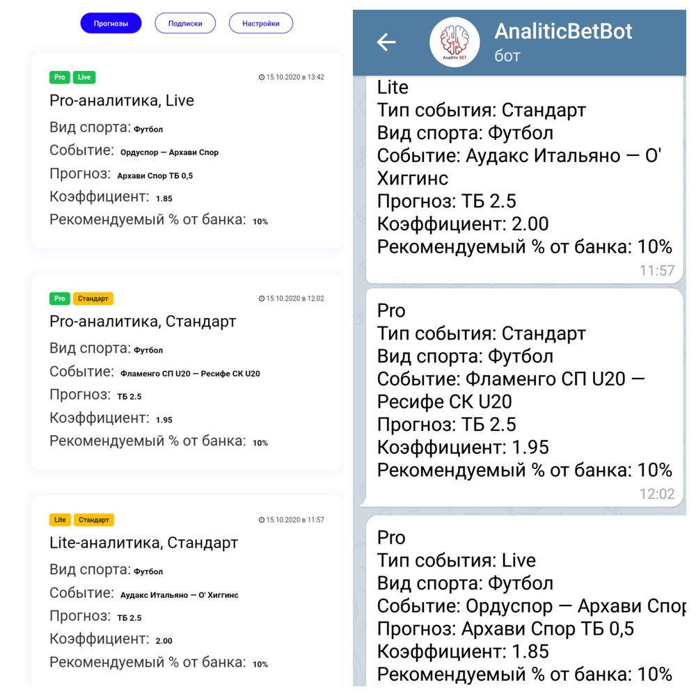 Подписчики сервиса могут подключать оба пакета подписки (Lite и Pro) одновременно. При публикации новых прогнозов указывается, к какой категории аналитики они относятся.