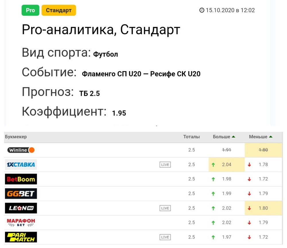 Сильных «просадок» коэффициентов по прогнозам сервиса не наблюдается, зачастую можно повторить ставку даже с более высоким кэфом, чем в прогнозе.