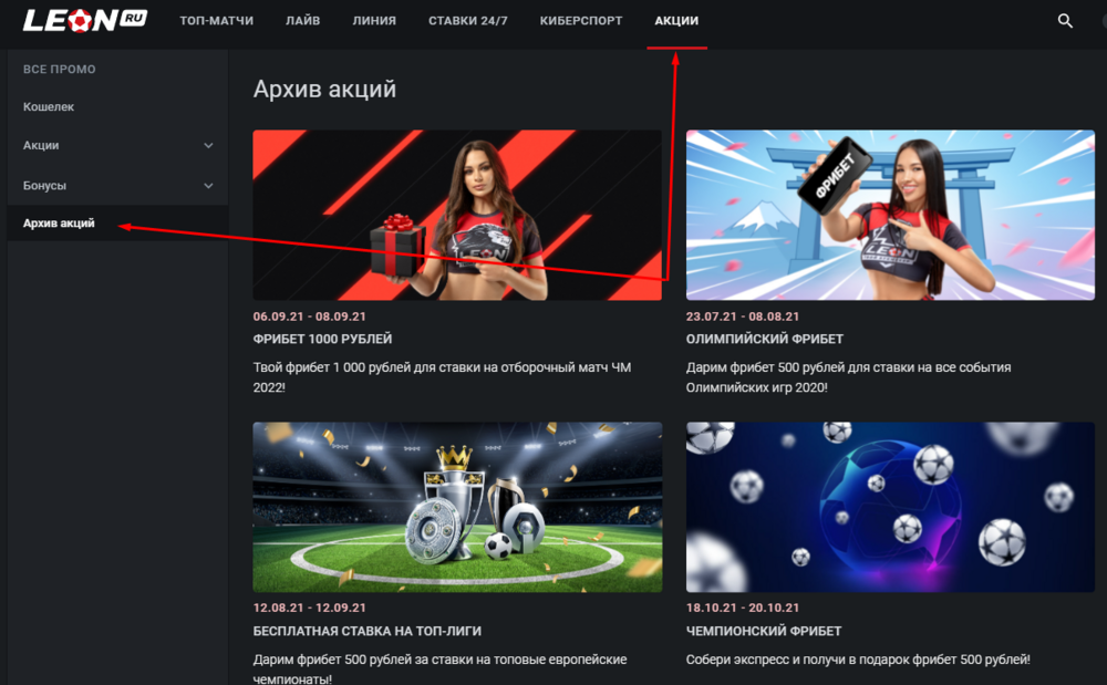 Чтобы понять, насколько предложения Леона разнообразны, просто отправляемся на сайт, открываем страницу «Акции», а затем выбираем «Архив акций» и смотрим.