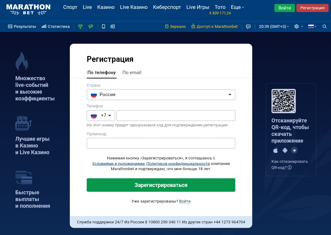 Зарубежная версия marathonbet.com работает по лицензии Кюрасао, принимают игроков из множества стран, включая Россию.