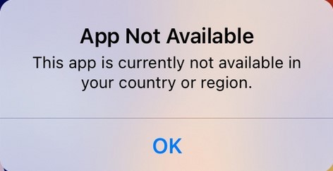 «Приложение недоступно. В данный момент приложение недоступно в вашей стране или регионе» или на английском «App Not Available. This app is currently not available in your country or region».