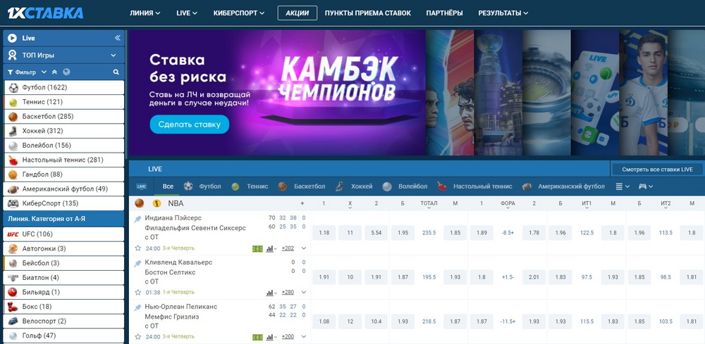 - Линия, роспись и коэффициенты идентичны как в прематче, так и в лайве. Никаких исключений, совпадение — 100%.