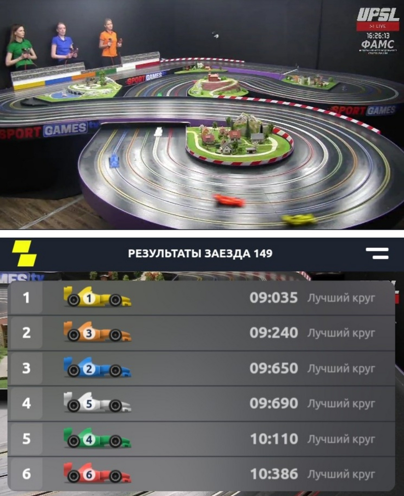 Гонки. Новинка, которая уже исчезла с сайта, но ранее была доступна в БК Париматч (возможно временно). Игра основывается на соревнованиях, проходящих в классе трассовых автомоделей. Они передвигаются по специальной трассе по встроенным в неё пазам, задающим направление пути. Автомодели управляются участниками соревнований с помощью пультов, регулирующих скорость. В каждом заезде 6 участников, которым необходимо проехать 3 круга. Заезд считается состоявшимся, если финишировали хотя бы 3 автомодели.