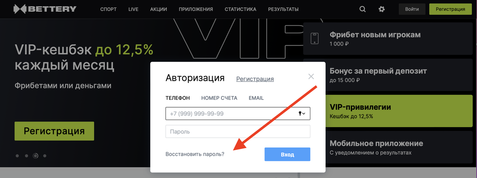 Доступ к аккаунту можно получить через форму «Восстановить пароль?» на сайте bettery.ru.