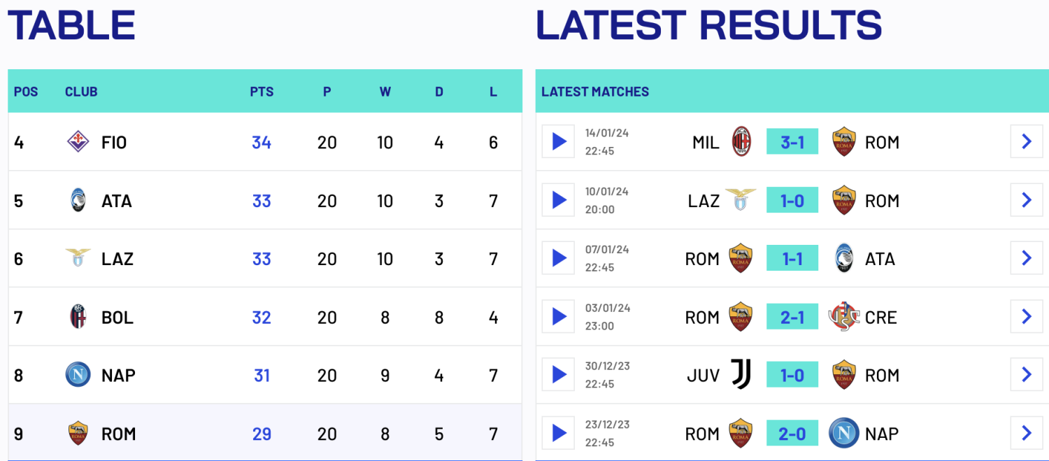 С другой стороны, Жозе так и не удалось добиться с командой высоких результатов в Серии А. Одной из главных задач, которые ставило перед португальцем руководство клуба, было возвращение «Ромы» в Лигу чемпионов. И вот с этим дела не сложились совершенно.