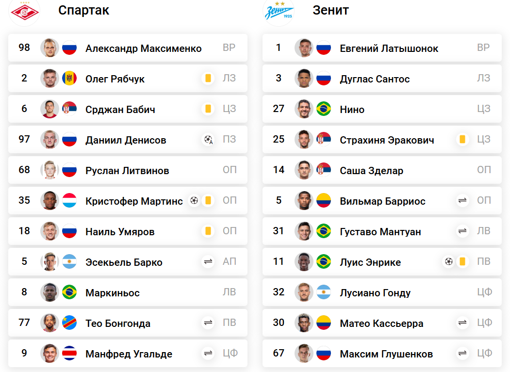 «Спартак» вышел в своей классической расстановке (4-3-3) и без сюрпризов в стартовом составе. Единственное вынужденное изменение — Литвинов вместо Дуарте из-за дисквалификации последнего.