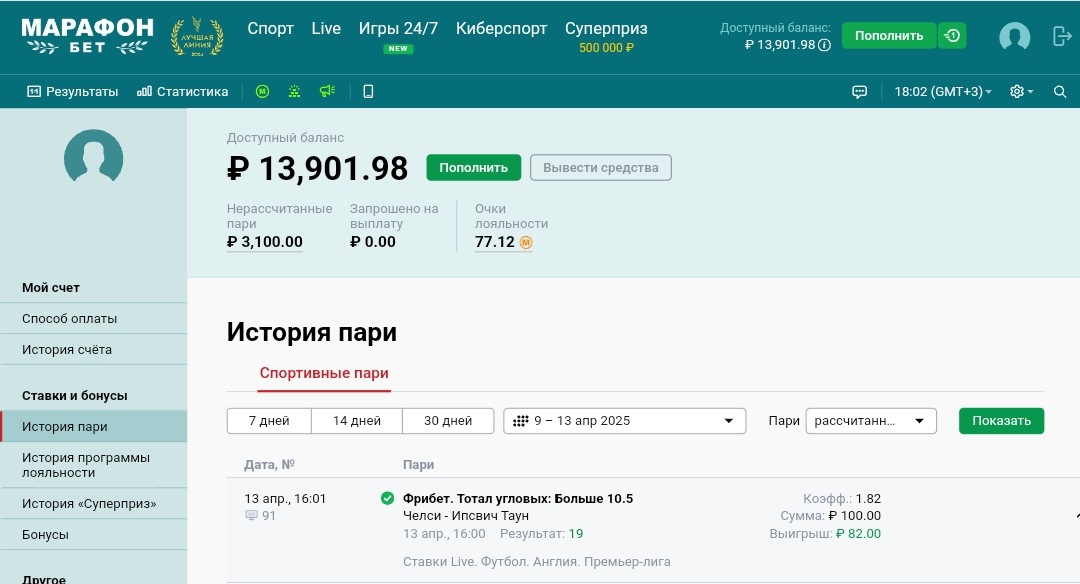 - Предложение доступно для всех игроков БК «Марафон» на всех его платформах;