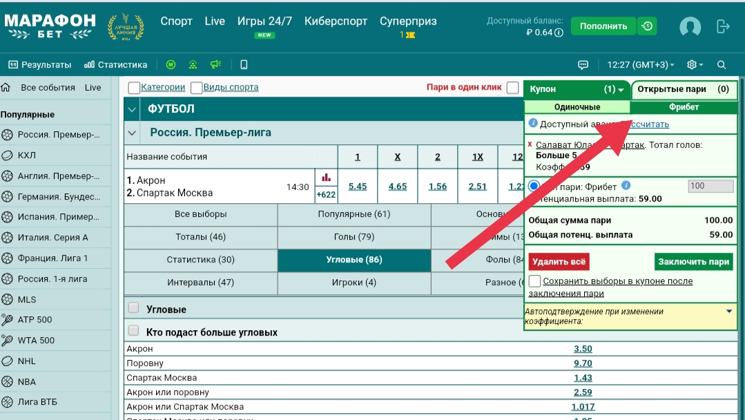 - Условия ставки на фрибет – ординар любого типа без ограничений по коэффициенту.