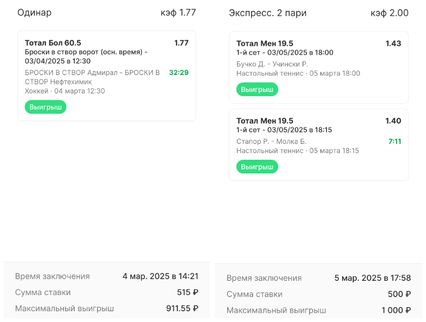 И первый и второй фрибеты можно использовать для ставок типа «одинар» с коэффициентом не выше 4,5. Сумму фрибета разбивать на части нельзя.
