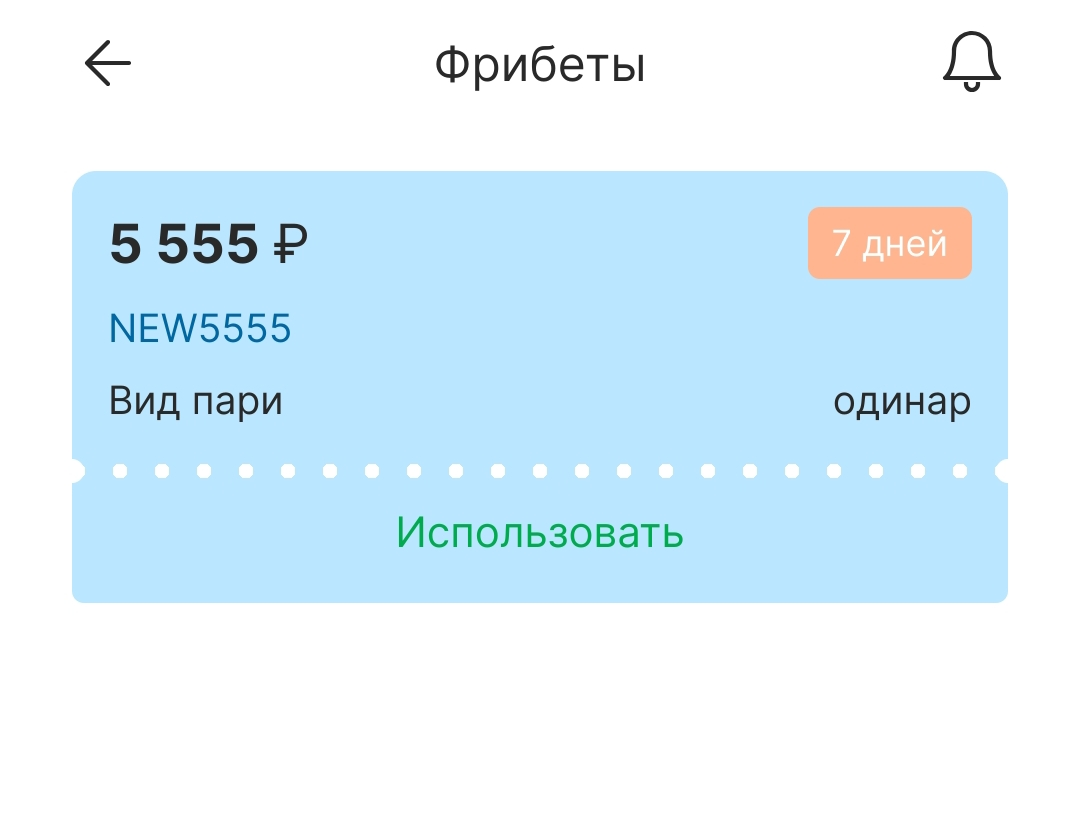 Первый фрибет нужно использовать в течение 7 суток с момента начисления.