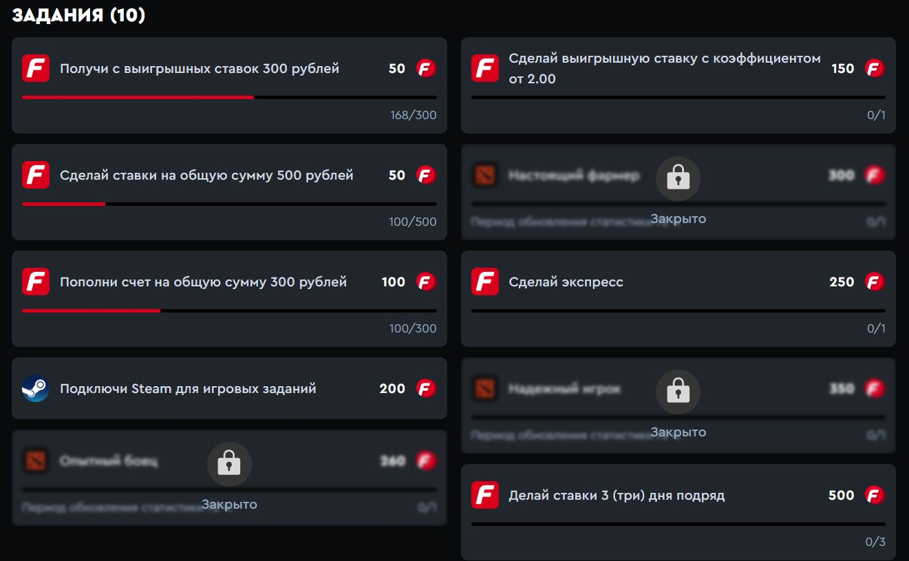 - Выполняя задания, игрок получает поинты, которые можно обменять на скины или фрибеты.