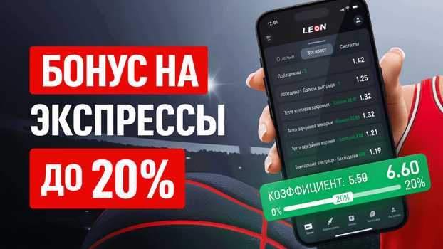 Букмекерская контора «Леон» проводит акцию «Бонус на экспрессы». Собирайте экспресс-ставки от 3 событий, и в случае успеха вы получите прибавку до +20% к выигрышу. Бонус не требует отыгрыша и начисляется реальными деньгами вместе с выигрышем.