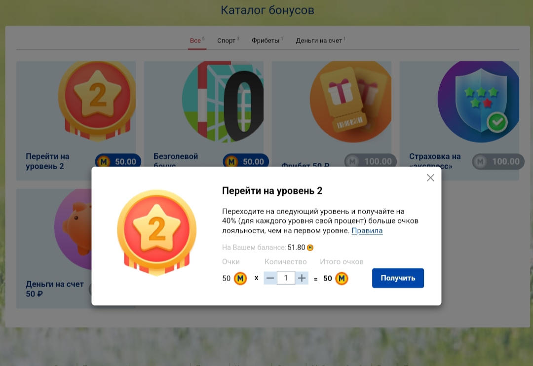 Например, на первом уровне за поставленные 250 рублей будет начислено 0,5 баллов. На третьем уровне за 1 000 поставленных рублей начислится 2,4 балла.