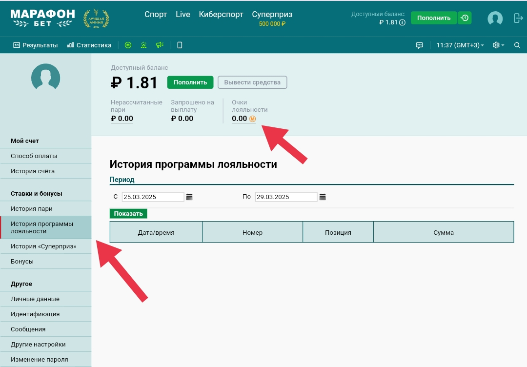 - Баллы не начисляются за ставки на фрибеты, пари с возвратом и использованием функции досрочной выплаты.