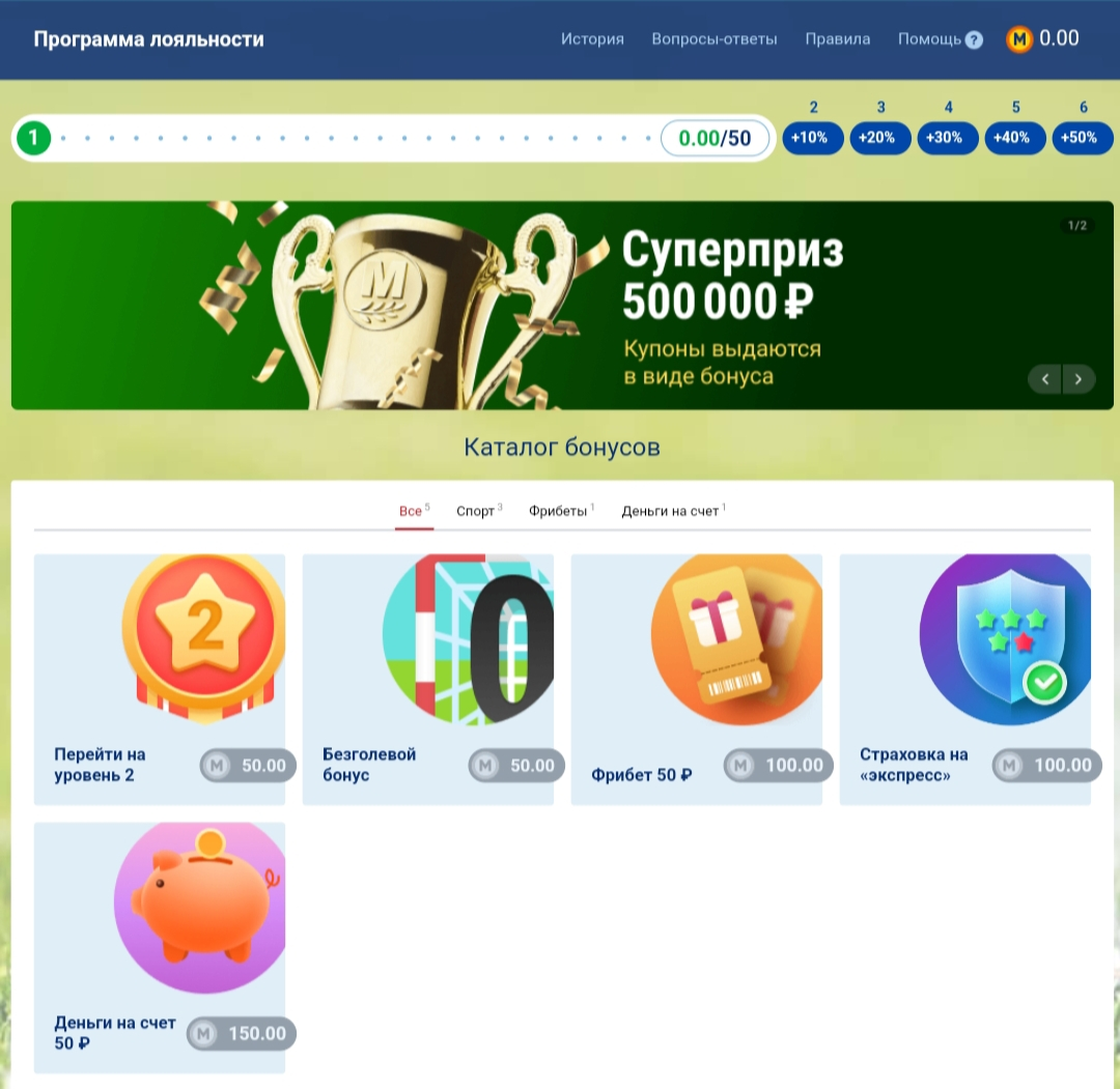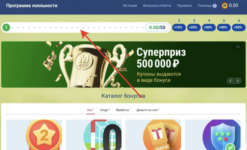 Все новые участники начинают с первого уровня. Очки начисляются за ставки – за каждые поставленные 500 рублей можно получить от 1 до 2 очков в зависимости от уровня, на котором находится участник: