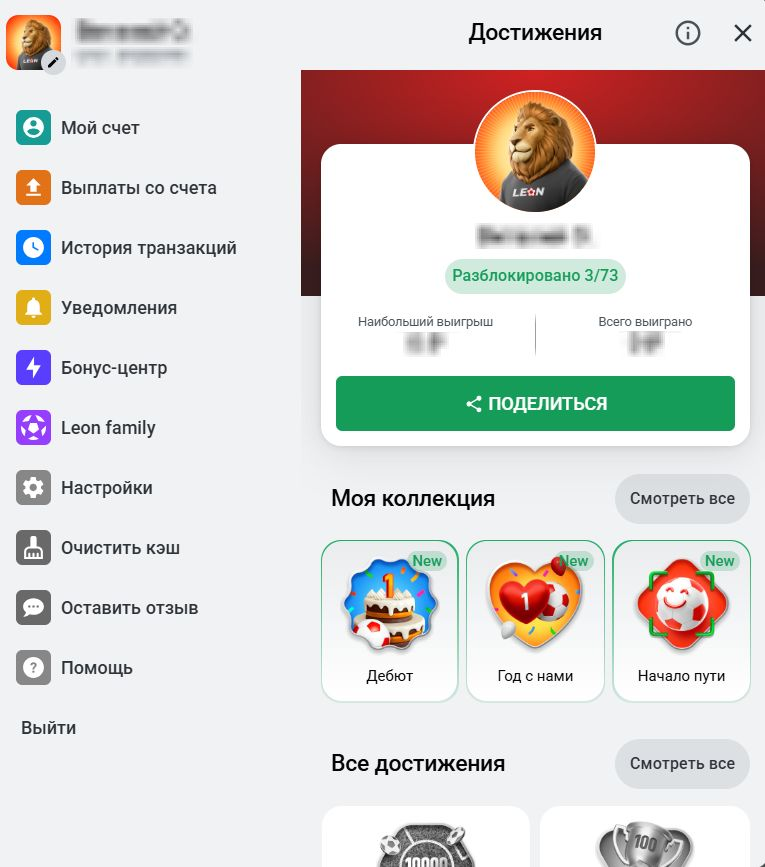 Букмекерская компания «Леон» представила обновлённый раздел «Достижения» в Бонус-центре. Теперь клиенты могут выполнять разнообразные задания, открывать уровни активности и получать гарантированные вознаграждения. Раздел сочетает элементы геймификации с реальными призами: от фрибетов и бонусов к пополнению счёта до эксклюзивных аватаров и фонов, подчёркивающих статус игрока.