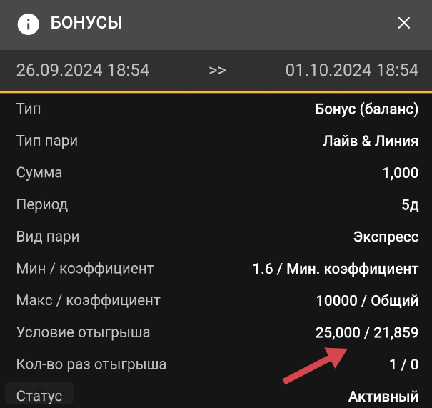 Условия отыгрыша: