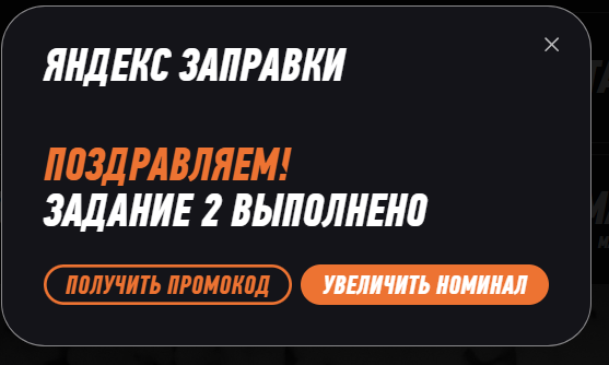 После выполнения двух заданий, решено было забрать промокод. Выбран сервис «Яндекс Заправки».