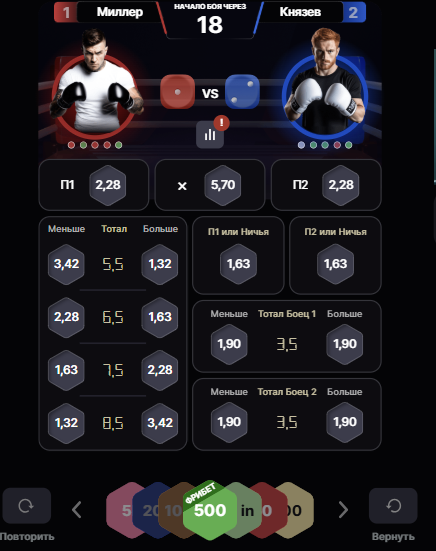 Сам фрибет будет доступен в панели выбора суммы ставки. Пример ниже.