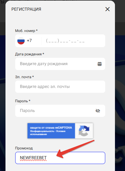 - Зарегистрироваться в «Бет-М», используя промокод NEWFREEBET.