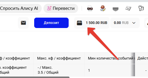 Сумма фрибета отобразится в верхней панели рядом с основным балансом