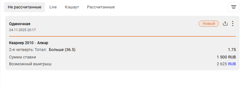 Оформляем ставку на сумму депозита с коэффициентом от 1.50 и дожидаемся ее расчета.