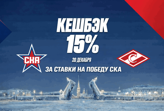 Если выбранный исход не сыграет и СКА проиграет матч, букмекер начислит кешбэк в виде фрибета. Размер компенсации составляет 15% от суммы ставки, но не более 10 000 рублей.