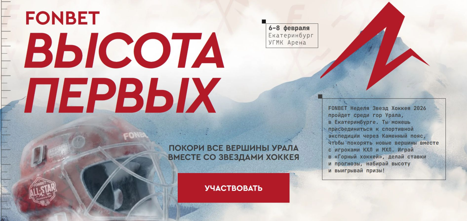 Букмекерская компания «Фонбет проводит акцию «Высота первых», приуроченную к Неделе Звёзд КХЛ 2026. В рамках акции клиенты смогут зарабатывать баллы, участвуя в ставках на КХЛ, мини-игре и хоккейной викторине, а затем обменивать их на билеты для розыгрыша ценных призов — VIP-туров на FONBET НХЗ 2026, гаджетов Apple и официального мерча КХЛ. Формат акции позволяет участвовать без серьёзных рисков и самостоятельно выбирать, за какие подарки бороться.