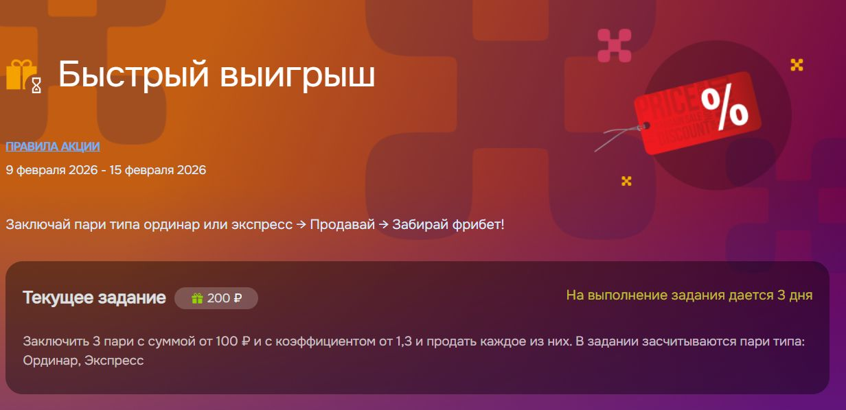 Букмекерская контора «Балтбет» проводит акцию «Быстрый выигрыш», предлагая фрибет за три проданных ставки на спорт.