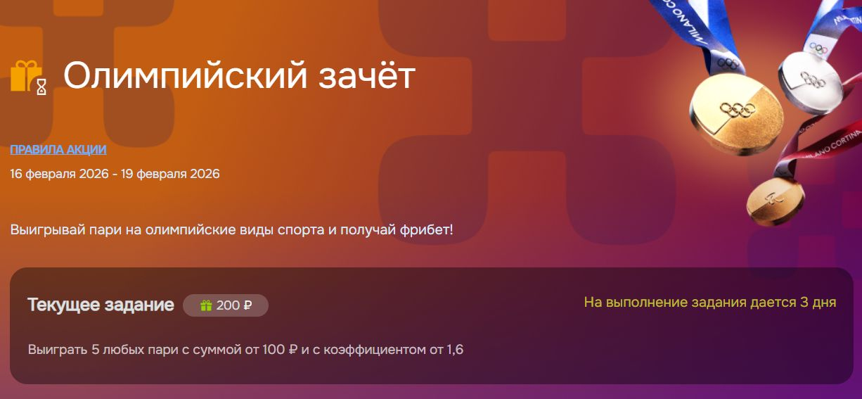 Букмекерская контора «Балтбет» проводит акцию «Олимпийский зачёт», предлагая фрибет за 5 выигранных ставок.