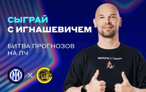 Букмекерская контора «Бетсити» проводит акцию, приуроченную к матчу Лиги чемпионов «Интер» – «Будё-Глимт» (начало матча 24 февраля, 23:00 мск). В рамках этой акции подписчики Telegram-канала БК смогут сразиться в прогнозах с известным российским футболистом и тренером Сергеем Игнашевичем. Один счастливчик получит шанс обыграть его и выиграть 5000 рублей в виде фрибета. Даже если удача не будет на вашей стороне, участник всё равно получат 1000 рублей фрибетом.