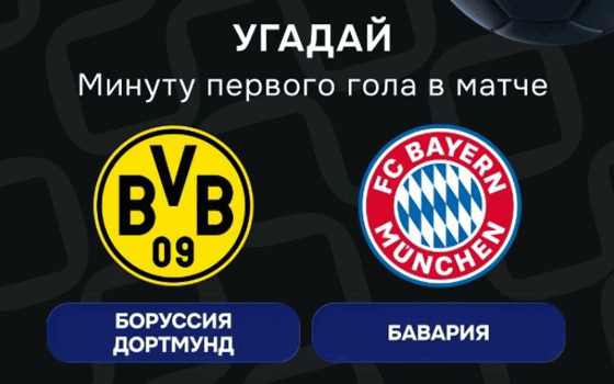 - До 28 февраля (22:30 мск) в комментариях к посту оставить прогноз на минуту первого гола в матче «Боруссия» Д — «Бавария», указав номер счёта в БК.