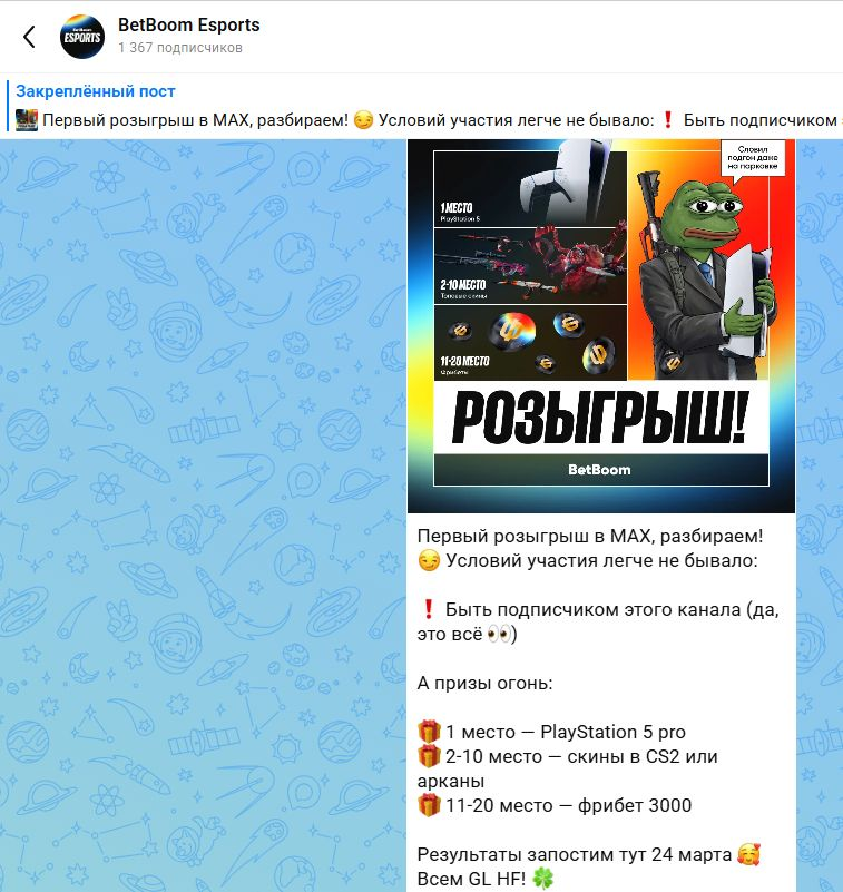 - Подписаться на канал BetBoom Esports в платформе MAX.