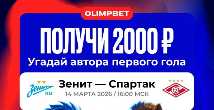 Букмекерская компания «Олимпбет» проводит конкурс для поклонников российского футбола. Акция приурочена к центральному матчу 21-го тура РПЛ — встрече между «Зенитом» и «Спартаком» (начало — 14 марта, 16:00 мск).