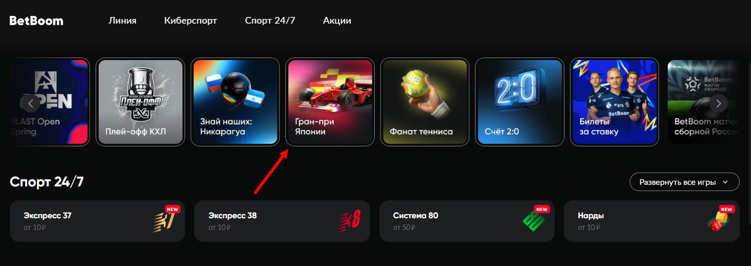 - Перейти в сторис «Гран-при Японии» в мобильном приложении букмекера.