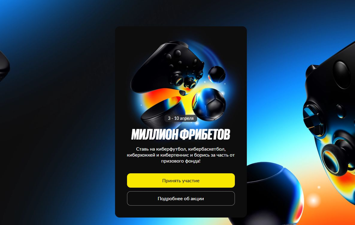 BetBoom проводит турнир для поклонников виртуальных дисциплин. В рамках предложения участникам предстоит делать ставки на киберфутбол, кибербаскетбол, киберхоккей и кибертеннис и набирать очки, чтобы попасть в число призеров. Общий призовой фонд составляет 1 000 000 рублей фрибетами, которые распределят между 200 лучшими игроками. Механика проста: чем выше активность и оборот ставок — тем выше позиция в рейтинге и потенциальная награда.
