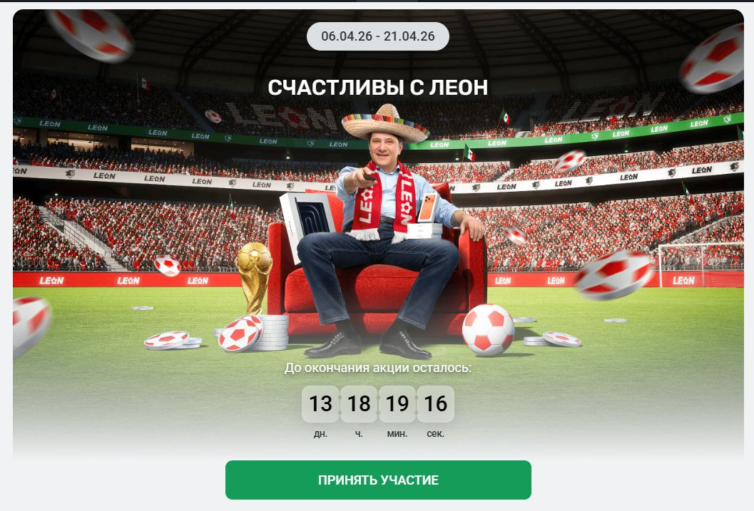 БК «Леон» проводит акцию в честь сотрудничества с Виктором Логиновым. В рамках предложения пользователи могут принять участие в лотерее с призовым фондом более 1 000 000 рублей, включая фрибеты крупного номинала и премиальные гаджеты Apple.