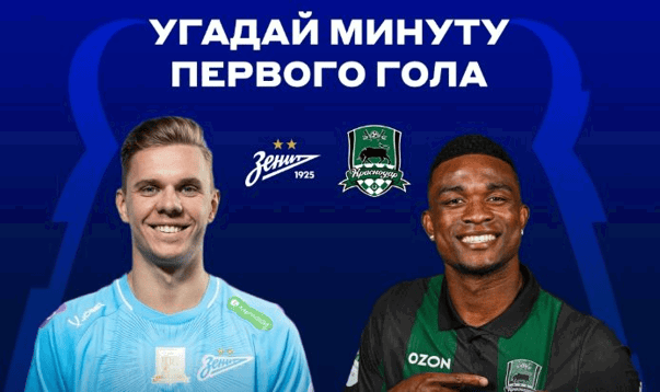 - Угадать минуту первого гола в матче «Зенит» — «Краснодар» под акционным постом в Telegram-канал «Бетсити».