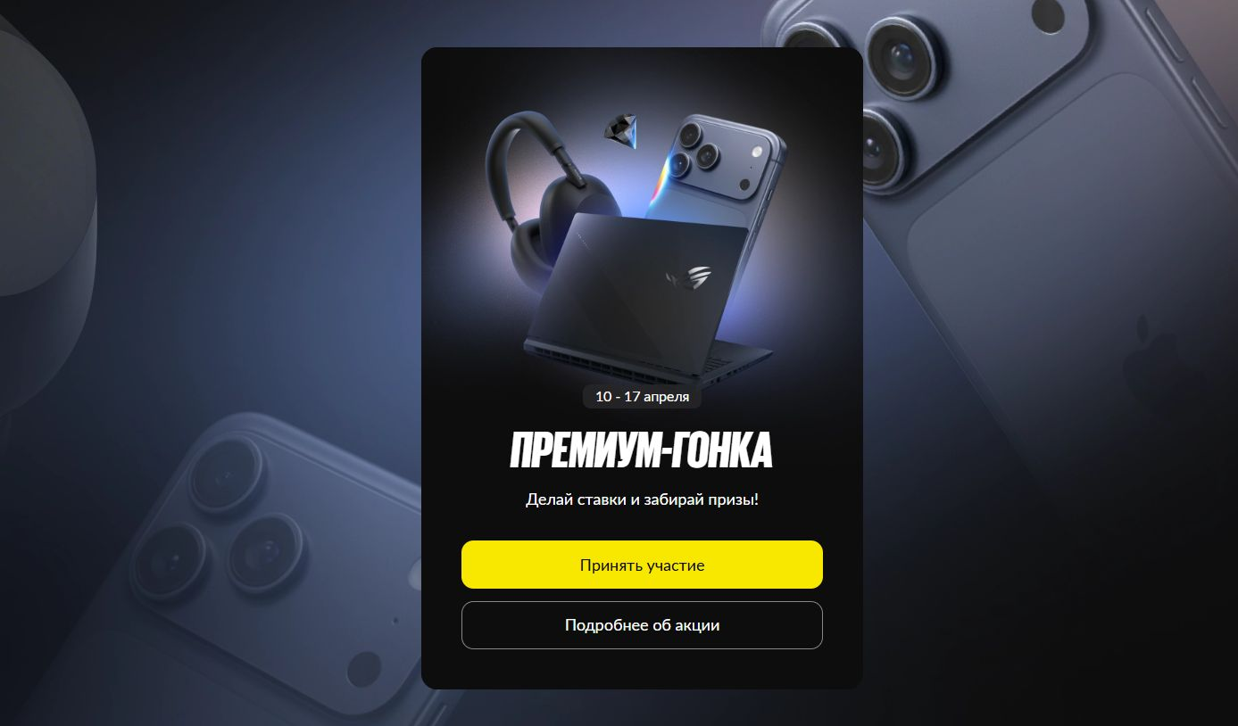 Букмекер BetBoom проводит акцию «Премиум гонка» в формате турнира с розыгрышем ценных призов. Участникам предлагается набирать очки за ставки на любые события и продвигаться в турнирной таблице. По итогам акции 16 лучших игроков получат премиальные гаджеты, включая iPhone 17 Pro Max и игровые ноутбуки.