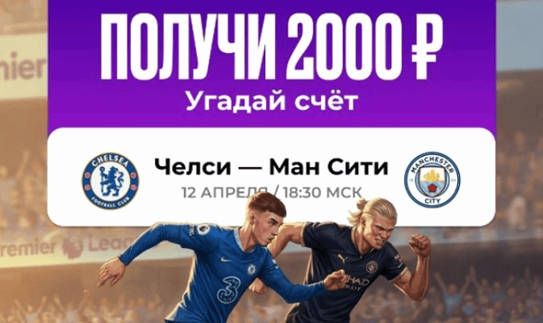 Букмекерская компания «Олимпбет» проводит конкурс прогнозов к матчу АПЛ «Челси» – «Манчестер Сити» (начало – 12 апреля, 18:30 мск). Участники, угадавшие точный счёт встречи, смогут выиграть фрибет номиналом 2000 рублей. Всего разыгрывается 10 фрибетов, а общий призовой фонд акции составляет 20 000 рублей.