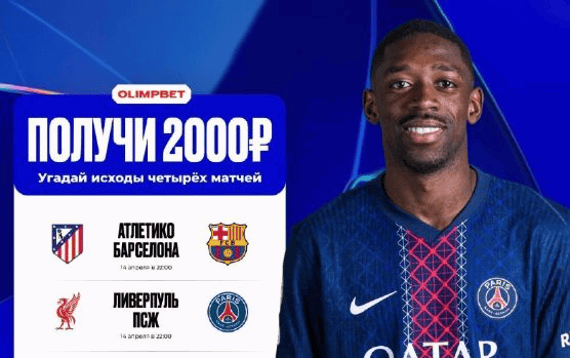 БК «Олимпбет» проводит конкурс прогнозов, приуроченный к ответным четвертьфинальным матчам Лиги чемпионов. Участникам предлагается угадать победителей во всех четырёх встречах. В случае точного прогноза появляется шанс получить часть призового фонда в размере 20 000 рублей.