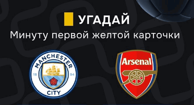 - Прогноз должен включать минуту первой желтой карточки в матче «Манчестер Сити» — «Арсенал», который начнётся 19 апреля, 18:30 по МСК.