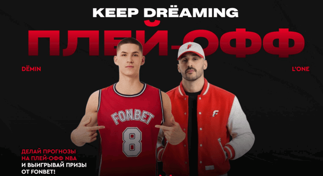 Букмекерская компания «Фонбет» проводит акцию «KEEP DRЁAMING. Сетка плей-офф», приуроченную к решающей стадии НБА. Участникам предлагается пройти полный путь прогнозирования плей-офф — от первого раунда до финала — и подтвердить свой выбор ставкой. Общий призовой фонд составляет 1 000 000 рублей фрибетами, которые распределяются между игроками с наиболее точными прогнозами.