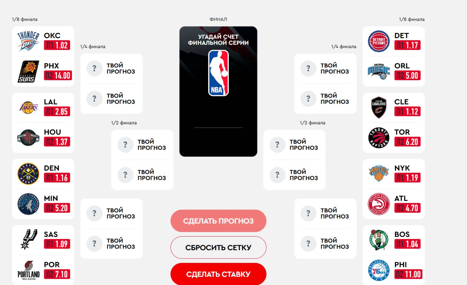 - Выбрать победителей во всех парах плей-офф НБА.
