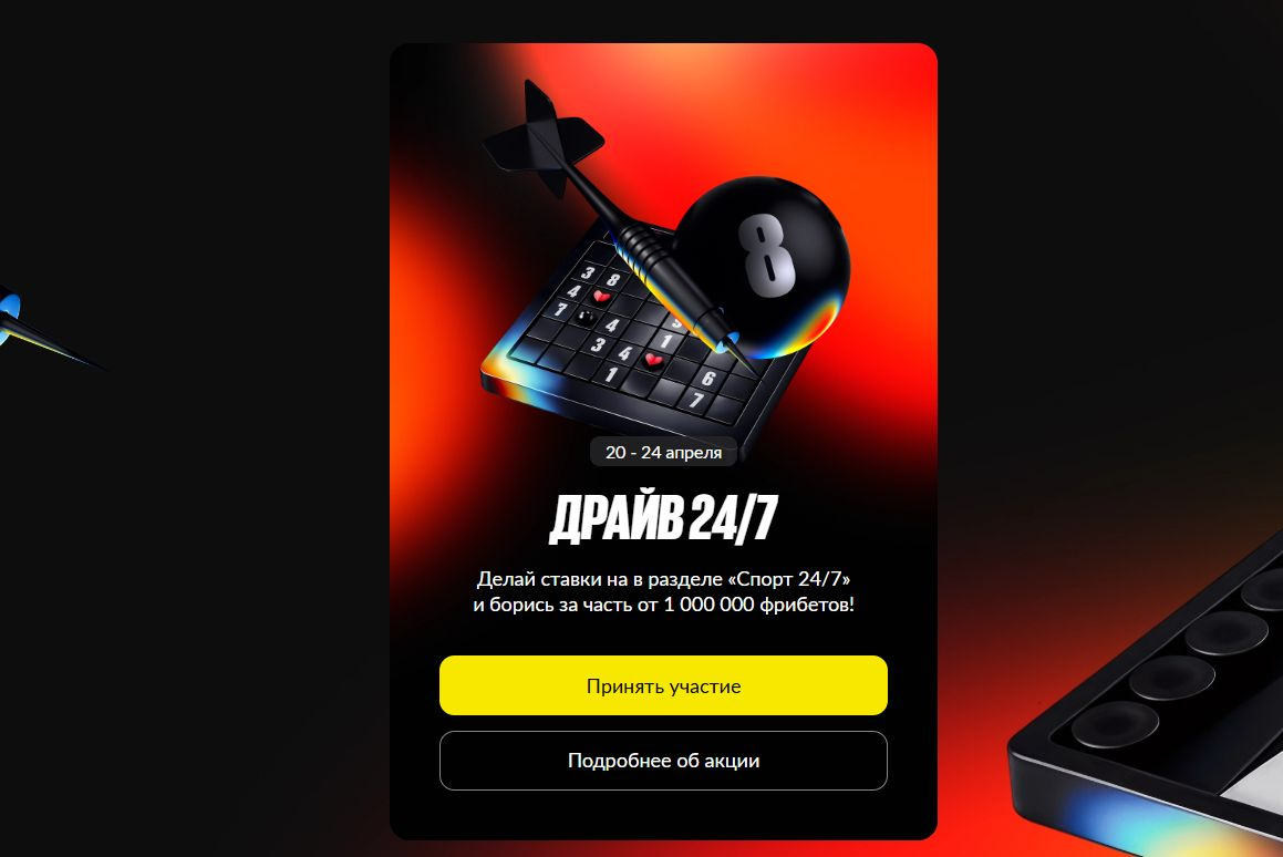 Букмекер BetBoom проводит гонку «Драйв 24/7» с призовым фондом 1 000 000 рублей. Участникам предстоит делать ставки в разделе быстрых игр и набирать очки за игровой оборот. По итогам акции 500 самых активных клиентов получат фрибеты номиналом от 1000 до 60 000 рублей. Механика максимально простая: чем больше ставишь — тем выше поднимаешься в турнирной таблице.